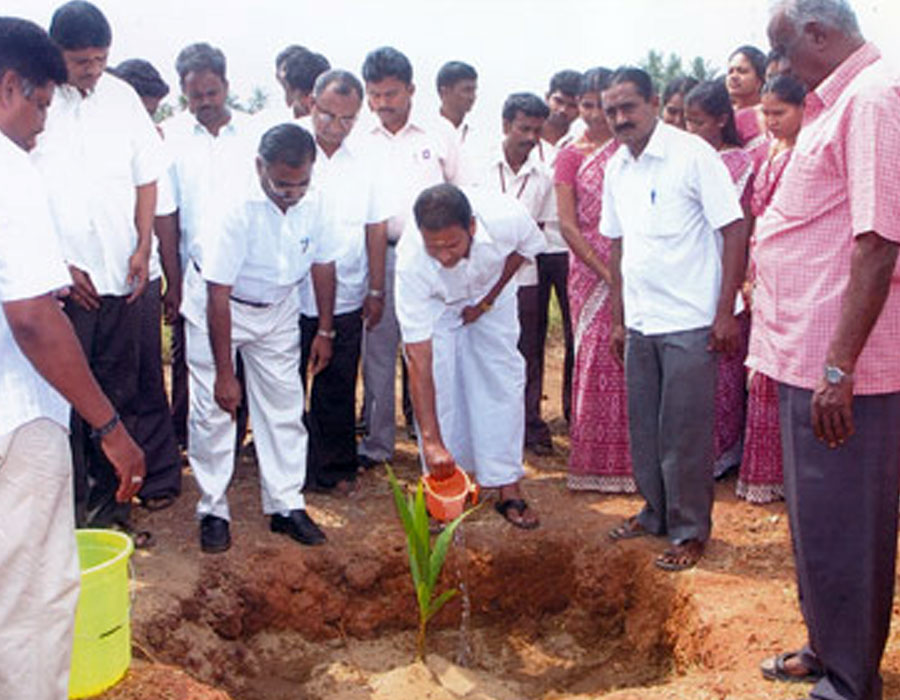 Environmental club a coconut sapling planted by Shri. R. Manivannan, Managing Director, Shri Renuga Mills, Theni.